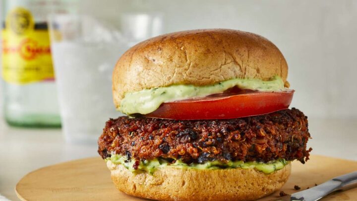 These easy vegan black bean burgers have a healthy dose of fiber thanks to the combination of black beans and quinoa. Cumin and chipotle chile powder give these vegan burgers a Southwestern spin. Using your hands to combine the mixture creates a soft, uniform texture.