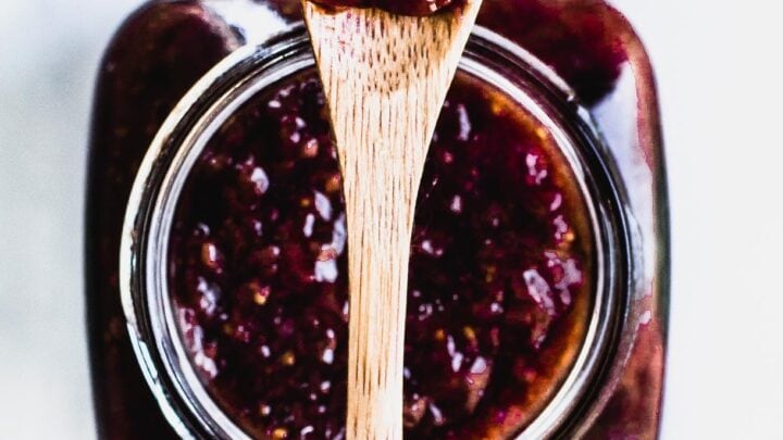 "This naturally sweetened rhubarb jam is made with dried figs and lemon, no water bath canning needed! These lovely spring preserves are fruity and balanced, with floral notes from the honey."