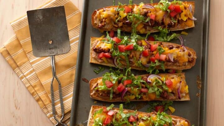 "Take your favorite taco ingredients, and layer them up on French bread. So easy and tasty, too!"