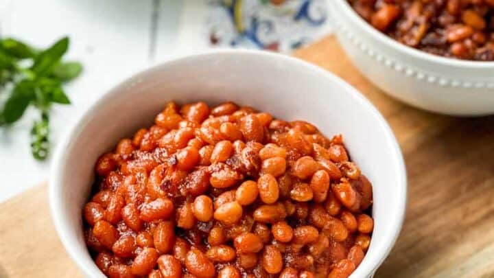 Smokey Instant Pot Baked Beans recipe is the perfect side for summer BBQs or game time food. And cook in a fraction of the time. Smokey, sweet, and tender beans cooked with bacon and pure maple syrup.