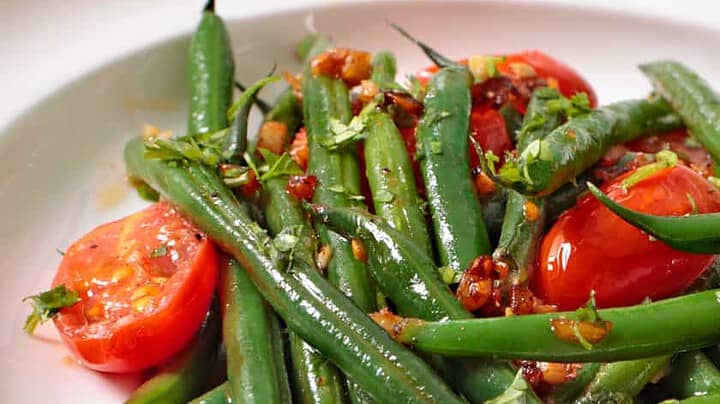 This Neapolitan Green Beans recipe is an all-time favorite. I love the snap of fresh green beans enhanced with garlic, fresh garden tomatoes, and a bit of heat with red pepper.