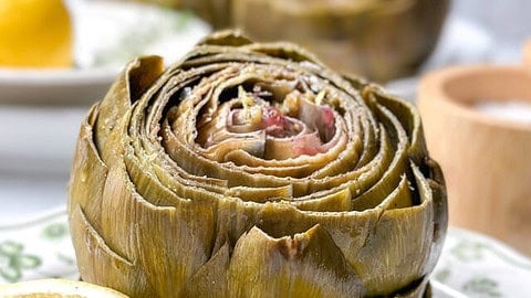 This delicious Steamed Artichoke recipe with lemon butter infused with fresh thyme is a perfect appetizer for spring gatherings. The tender petals seasoned with salt, pepper, and garlic are a treat you won’t want to miss.