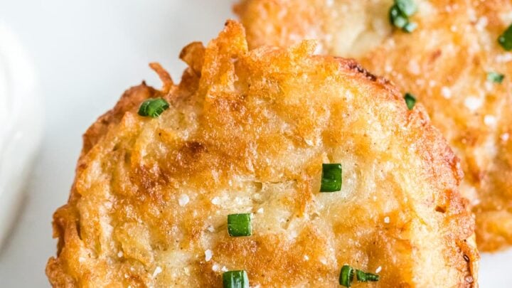 Potato Latkes made with matzo meal are an excellent side dish for Passover.