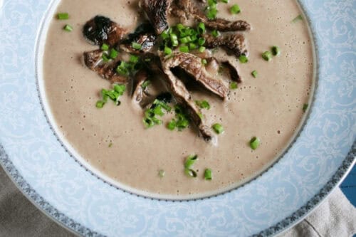 This easy recipe for Creamy Chestnut Mushroom Soup pairs mixed mushrooms with a jar of silky cooked chestnuts for a rich, freezer-friendly soup that is perfect for fall. This mushroom soup recipe is simple enough for dinner, but also elegant enough to serve as a Thanksgiving appetizer!