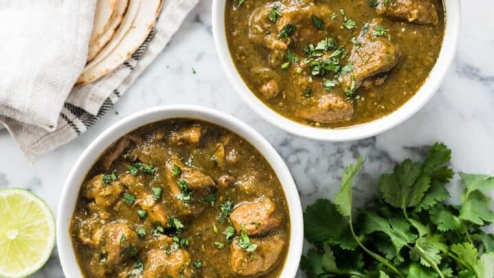 "This authentic Mexican Chile Verde recipe is made of tender pieces of pork simmered in a flavorful tomatillo and chile broth. Serve in a bowl or with a side of rice for an authentic Mexican meal! (low carb, gluten free, paleo, freezer-friendly)"