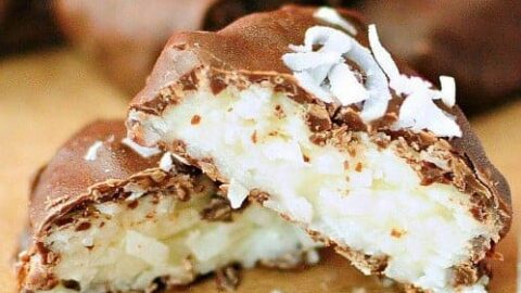 These 4 Ingredient Coconut Cream Bars are an easy, no bake candy that tastes like a mounds bar! They’re even gluten free!!