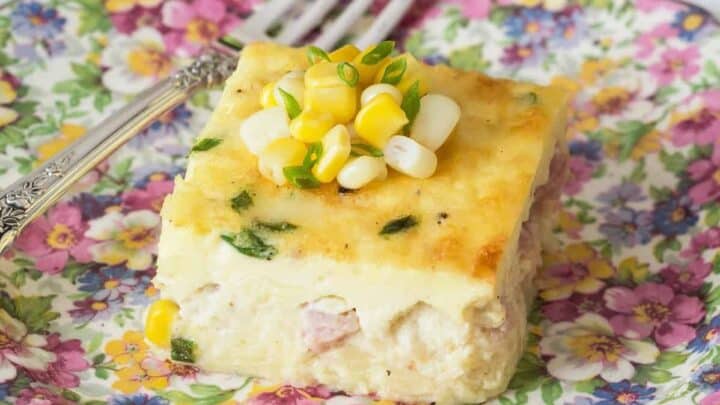 "A crustless quiche like this Ham, Corn, and Chive Crustless Quiche is a perfect addition to the savory course when one of your guests has a gluten allergy."