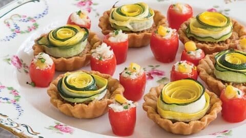 Rose Zucchini Tartlets are easy and elegant appetizers or teatime savories. They are simple to make with a handful of ingredients, such as puff pastry, zucchini, summer squash, olive oil, summer seasonings, and herbs. These bite-size appetizers are a delicious way to celebrate the season!
