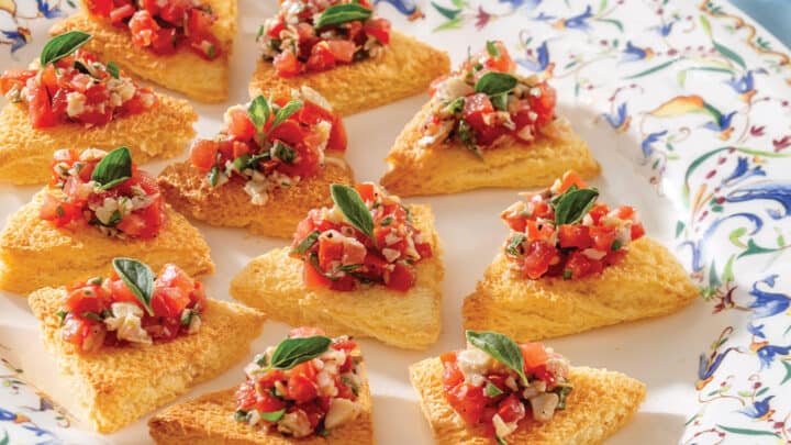 "Bringing a taste of Rome to the offerings are Bruschetta Canapés, savory triangles topped with a seasoned Campari tomato mixture."