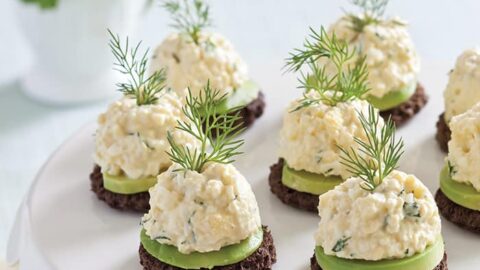 “Fresh dill and a hint of Dijon mustard give these Avocado-Egg Salad Canapés extra flavor.”