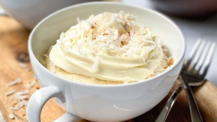 Coconut Mug Cake is a decadently delicious 2-minute microwave dessert that's perfect for coconut cake lovers. It's a simple moist and tender mug cake you'll fall in love with.