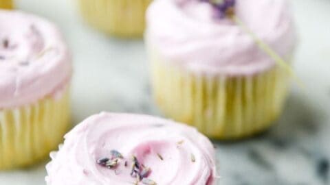 "Sweet lemon cupcakes topped with vanilla lavender frosting are not only delicious, but a super fun way to change up your usual vanilla or chocolate cupcake! From Jessica Merchant of How Sweet It Is."