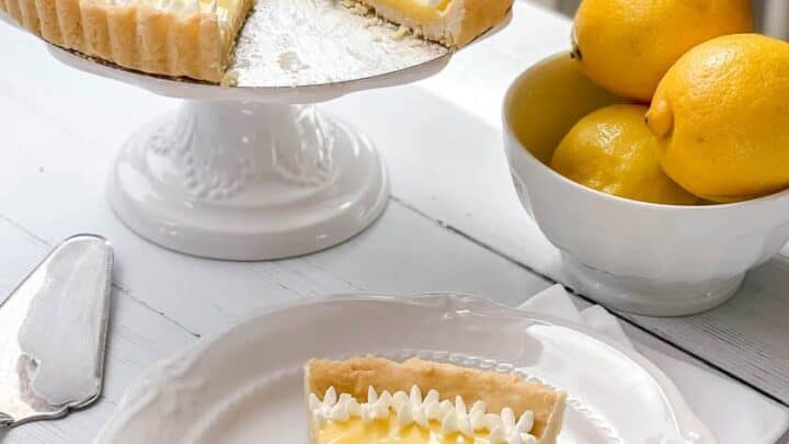 This French Lemon Curd Tart is inspired by Tarte au Citron, or French Lemon Tart. It's a creamy, slightly tangy lemon custard filling baked in a crisp, buttery shortbread crust. It's incredibly simple to make, and utterly delicious!
