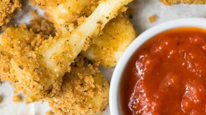 Unlike the mozzarella sticks you’ll find in a freezer box or on a bar menu, today’s homemade version isn’t fried at any point along the way. They’re golden and crisp on the outside, delightfully stretchy and cheesy on the inside, and ideal for dunking."