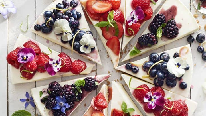 A classic cheesecake is made pretty with a variety of toppings. The only thing better than the way this elegant cheesecake looks is how simple it is to put together—there’s no baking required.