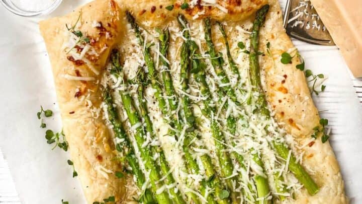 An Asparagus Tart so easy, it's hard to believe. Incredibly delicious for brunch season with tender asparagus, grated cheese on puff pastry.