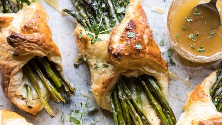 Asparagus and Brie Puff Pastry with Thyme Honey.