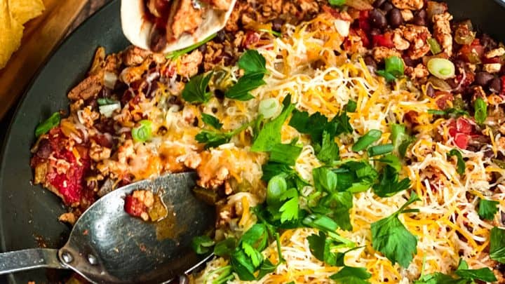 This Skillet Taco is the easiest, most delicious way to serve tacos at your next party. With a few simple, healthy ingredients, it's a go-to game day, Super Bowl, Friday night tradition.
