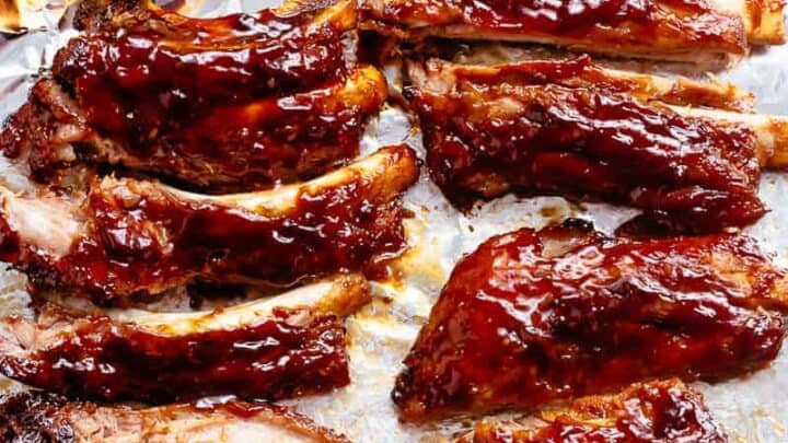 Wrapped in foil, the ribs cook faster, become juicy and tender… and the cleanup is easy! Bake or grill.