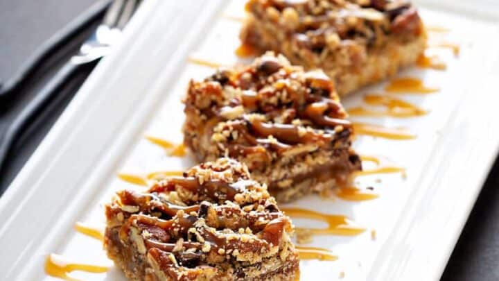 Easy Caramel Pecan Pie Bars are a decadent treat, packed with maple and pecans, and so much easier than a pecan pie.
