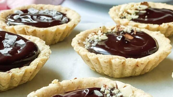 These Chocolate Ganache Mini Tarts are a chocolate lover's dream. A tender toasted almond shortbread crust is filled with an irresistible chocolate ganache that's so easy, you won't believe it.