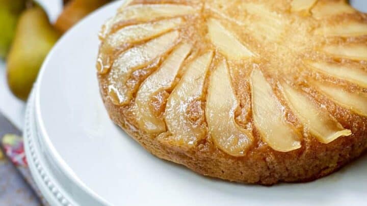 This Pear Upside Down Cake is an incredibly moist and tender cake with amazing fall-inspired flavors of maple, cinnamon, and cardamom. It's a simple cake with a delicious flavor you'll love during pear season.