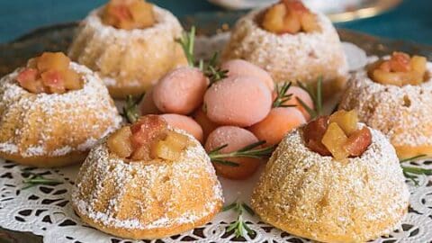 "These Ginger Cakes with Rosy Apple Compote are both beautiful and delicious to serve for a special occasion."