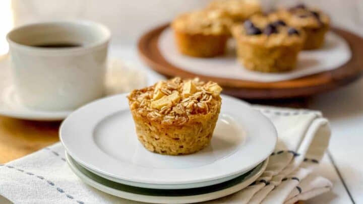 These healthy Baked Oatmeal Cups contain no refined sugar and are utterly delicious. Plus, you can make them 4 different ways to satisfy everyone. From apple cinnamon to blueberry, banana, or simply plain. Easy to make in about 30 minutes.