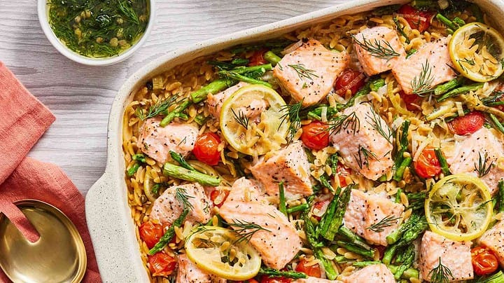 Thursday: Lemony Salmon & Orzo Casserole