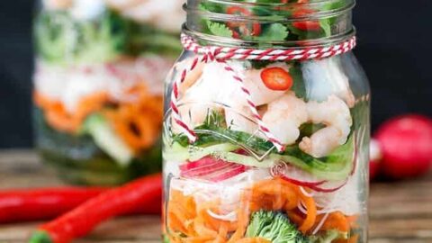 "These Quick & Easy Chicken Spring Roll Jars are the perfect grab-and-go lunch with ground chicken and sweet chili sauce for an added kick."