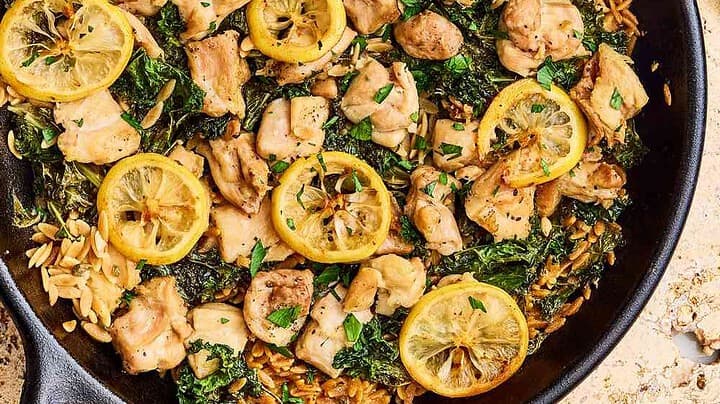Tuesday's dinner is packed with protein and is a classic chicken dish you are likely familiar with. This recipe, though, is made incredibly easy in a skillet. Lemon and kale complete this delicious weeknight meal.