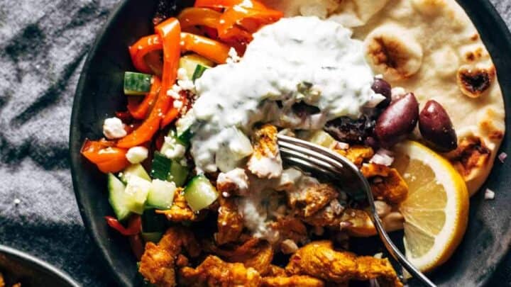 Monday's dinner is a fun and delicious way to begin a week of deliciousness. These chicken pitas are salty-briny-and-crunchy. All with easy homemade tzatziki.