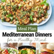 Enjoy simple, nourishing Mediterranean-Style Dinners for a Healthy Mind in this week's meal plan. Inspired by the Mediterranean Diet and MIND diet principles, these dinners focus on vegetables, beans, fish, lean proteins, olive oil, and whole grains for meals that feel fresh, satisfying, and especially fitting for spring.