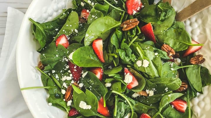 Strawberry Spinach Salad with Feta and Toasted Pecans