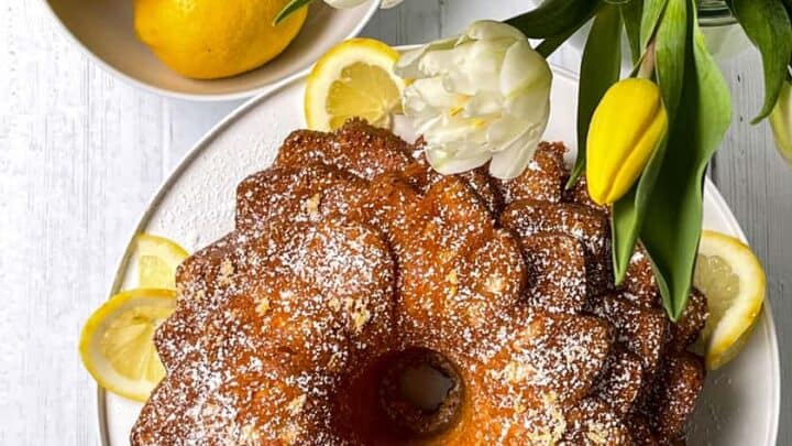 This Lemon Pound Cake is velvety soft, moist, buttery, and tender. Flavored with fresh lemon zest and juice, it's an easy to make cake that's absolutely spring perfect.