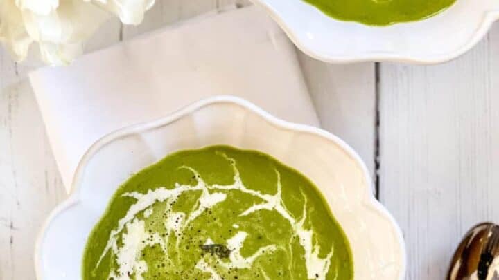 This French Pea Soup recipe, otherwise known as Potage Saint Germain, is an easy, classic dish, filled with the flavors of fresh peas and mint.