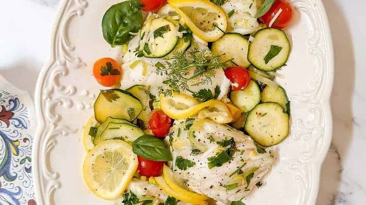 This easy steamed fish is a twist on classic fish en papillote, which is often served in individual parchment packets. This one-pot method delivers simple yet utterly delicious and tender seafood in minutes with all the flavors of the traditional French method.