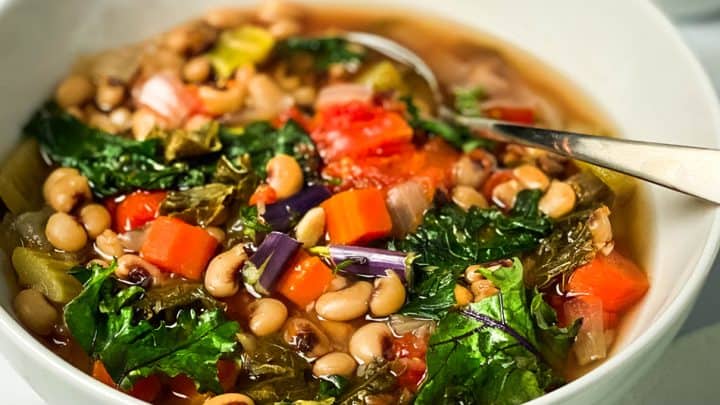 Slow Cooker Ikarian Stew is a delicious and hearty mixture of black-eyed peas, vegetables, and spices slowly cooked, and perfect for a chilly day.