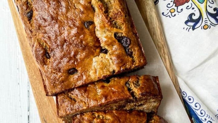 This Greek Yogurt Banana Bread recipe is moist and sweet, and creamy. A perfect balance of ripe bananas, creamy yogurt, and vanilla. Made even sweeter with a dash of chocolate chips.