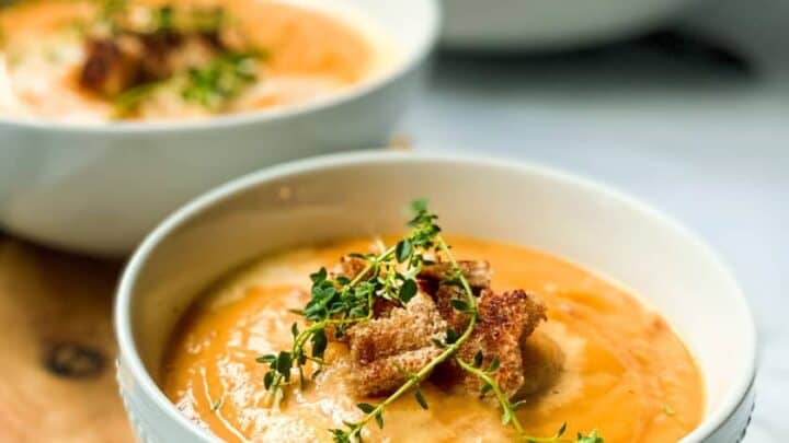 This creamy root vegetable soup is perfect for a chilly, winter day. Root vegetables simmer in a fragrant broth before being pureed into a velvety, delicious soup. Ready in 35 minutes or less!