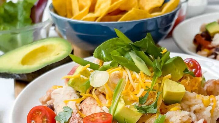 This Slow Cooker Chicken and Rice Burrito Bowl recipe is one of the easiest Mexican-inspired crockpot dinners you can make. Packed with delicious Southwest flavor, it requires zero prep, and is a one-pot dinner you'll love.