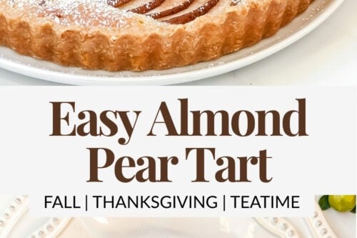This recipe is so easy to make. It’s pretty, it’s seasonal, and delicious! I love the pairing of almond flavors with mildly sweet pears. And this tart showcases them in the best possible way!