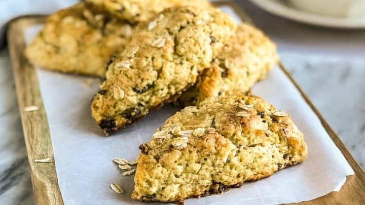 "These delightful teatime treats, Black Currant Oat Scones, are healthy, easy to make, and absolutely tender, flaky, and delicious. Perfect with your favorite jam."