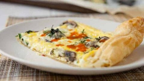 “I figured I might try to apply my love of thin crust to a frittata! Instead of making a huge crust to cover an entire sheet pan, I just used some frozen puff pastry sheets which worked surprisingly well! Puff pastry frittatas are the thin crust pizza of breakfast.”
