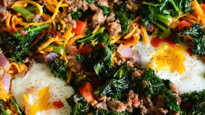 Sweet Potato, Kale and Sausage Breakfast Sheet Pan Bake