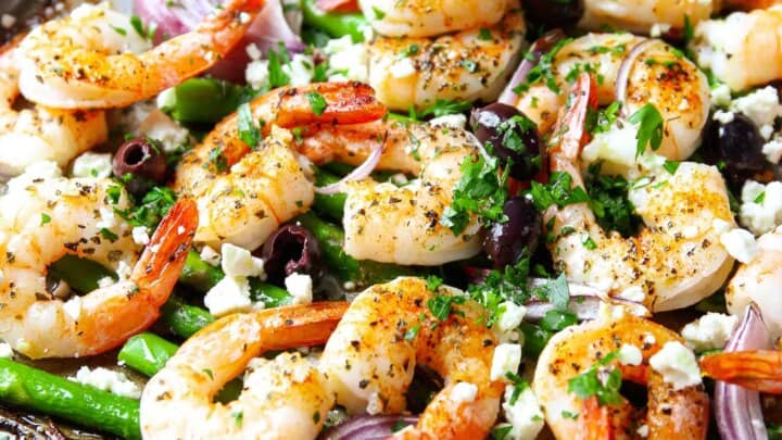 "This 10-minute Sheet Pan Mediterranean Shrimp recipe is easy, quick and effortless, perfect for a weeknight dinner or a weekend gathering. This recipe is vibrant, flavorful and healthy!"
