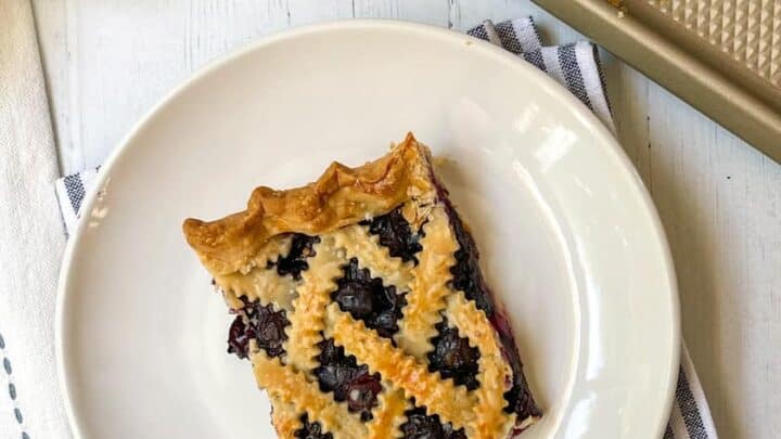 This Blueberry Slab Pie recipe is an easy way to make your favorite pie for a season of berries, festivities, and gatherings. Oh-so-delicious, its berry filling is packed with sweet bright flavors and warm spices.