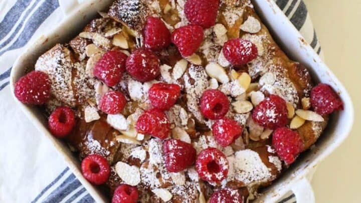Fruit, like strawberries and raspberries, served on the side of a dish brings all the Valentine's Day vibes, or make dishes, like Croissant Bread Pudding, and add bright red raspberries to the dish.