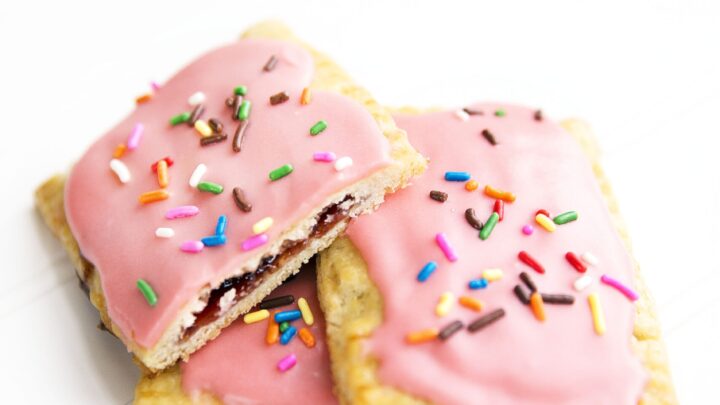 "Strawberry preserves & nutella sandwiched between soft, melt-in-your-mouth pastry dough and topped with a bright pink icing."