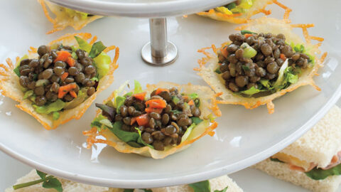 “Crispy Frico Cups made from Parmesan cheese are a lovely way to serve French Lentil Salad.”